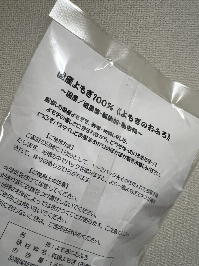 100%国産で無農薬のよもぎが1パックにぎっしり入ってて湯船でぎゅっと揉むたびによもぎのエキスがすんごい出てくるっていう見た目にも温まる感じなのですが、こちらね。そんなに高価ってわけでもないんです。